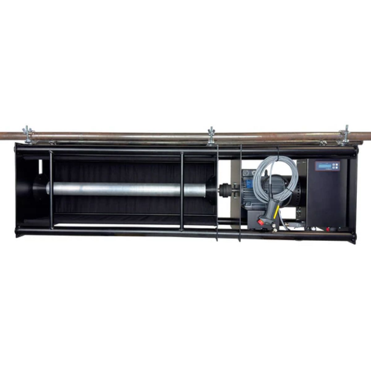 Curtain Sniffer puede tirar de hasta 100 m² de tela con un peso de hasta 15 kg en aproximadamente 1,5 segundos. El interruptor de hombre muerto viene con un cable de 10 m de largo, por lo que se puede manejar desde una distancia segura.El Curtain Sniffer viene con seis acopladores de ojo delgados (50 mm / 2 pulgadas), lo que facilita el montaje de la unidad en una estructura estándar en su escenario actual.